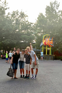 So the boys all wanted to go to Lagoon of course. But it is a very expensive little adventure if you don't have passes. I don't think Heidi would have taken the kids except it just happened to be the week Lagoon was celebrating the 50th anniversary of the Terror Ride and they were offering a huge discount--honestly the best I had ever seen, so it made sense that we go. We went on July 13th. I can't lie to you, we had the very best day. It was so hot, but that didn't dampen our spirits. It was so much fun. I think/know that Cy made it absolutely a hoot. He is so scared of rides, but he still goes on them and it is hilarious. His fear is genuine and he says the funniest things. We started off on the Terror Ride and of course the wait was so long and slow. Cy was so scared even before we got on the ride ("The letters are moving!" referring to the sign outside of the ride) and then the worst thing happened...we got stuck on the ride! It broke down and right at the point where this ghost comes flying at your face. It definitely made a hilarious memory, but it added a good 15-20 minutes to our time on the Terror Ride.