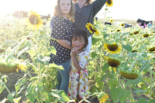 We had to wait in a very long car line to get in to the parking lot and it was so so so hot. I was picturing rows and rows of flowers, but there was just a small grouping of them. Vivi was not in the mood and poor Stella's face got red and sweaty fast since I was making her wear a sweater. We still got some great pictures, but the whole adventure wasn't really that enjoyable. Our feet got full of sand, we were thirsty and turns out...Vivi is deathly afraid of sunflowers. We got into the sunflower portion of the place and the pickings to get pictures where there weren't a ton of other people were limited. But Vivi just started to freak out about the flowers. It was weird. I don't even know what it was about them that she didn't like. I wish we had been more patient with her but we were all hot and thirsty.